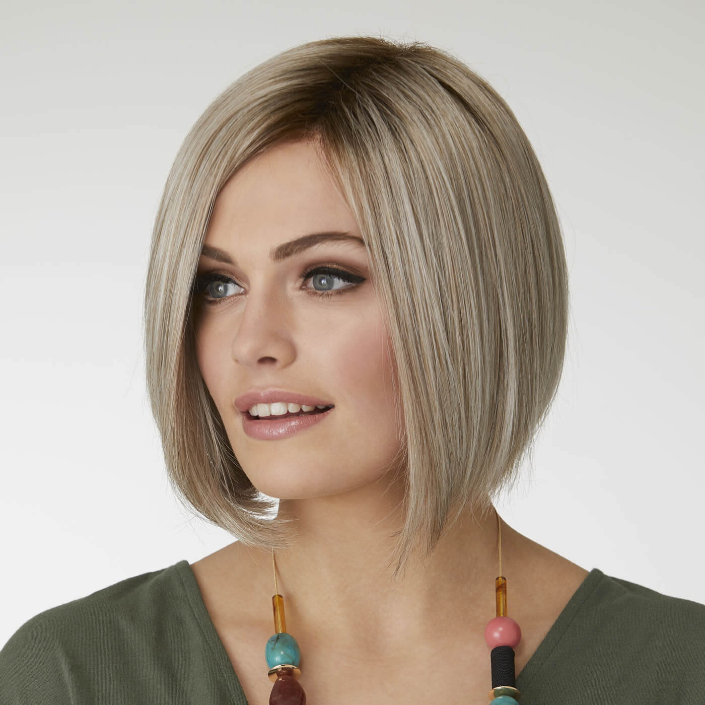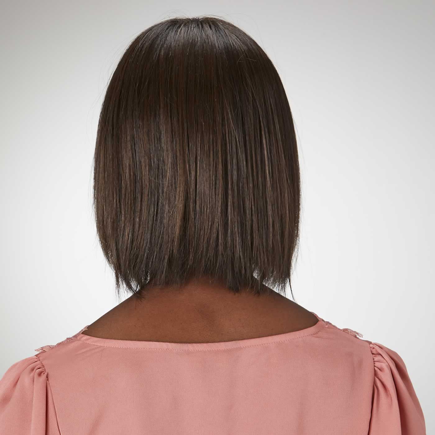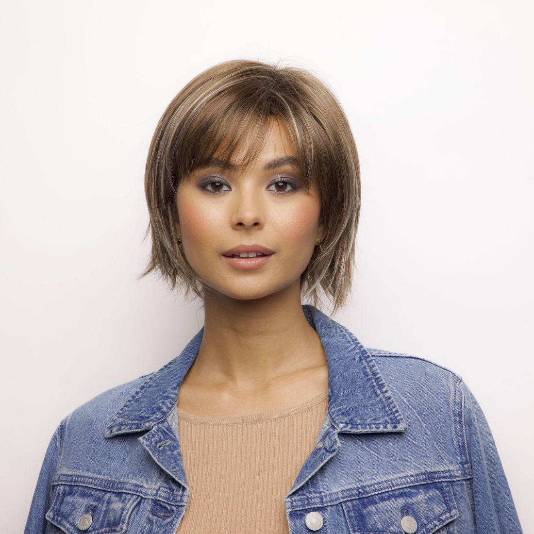 A stylish long bob with a feather cut. Face framing fringe and sides naturally contour into a jaw dropping feminine wig.