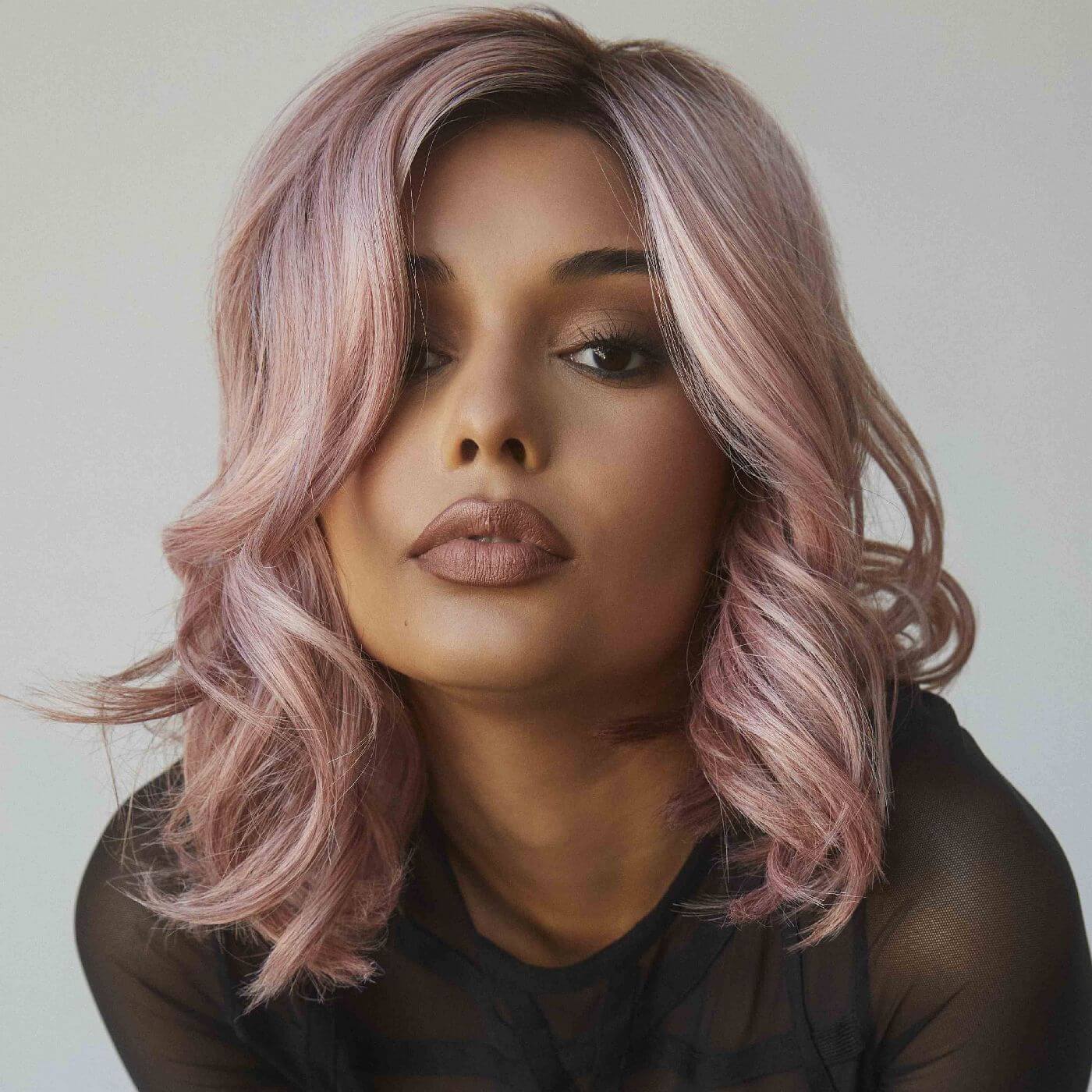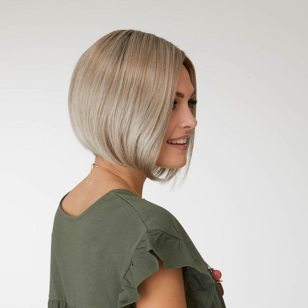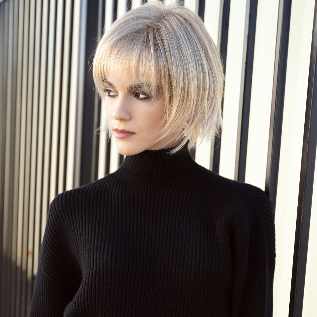 A stylish long bob with a feather cut. Face framing fringe and sides naturally contour into a jaw dropping feminine wig.